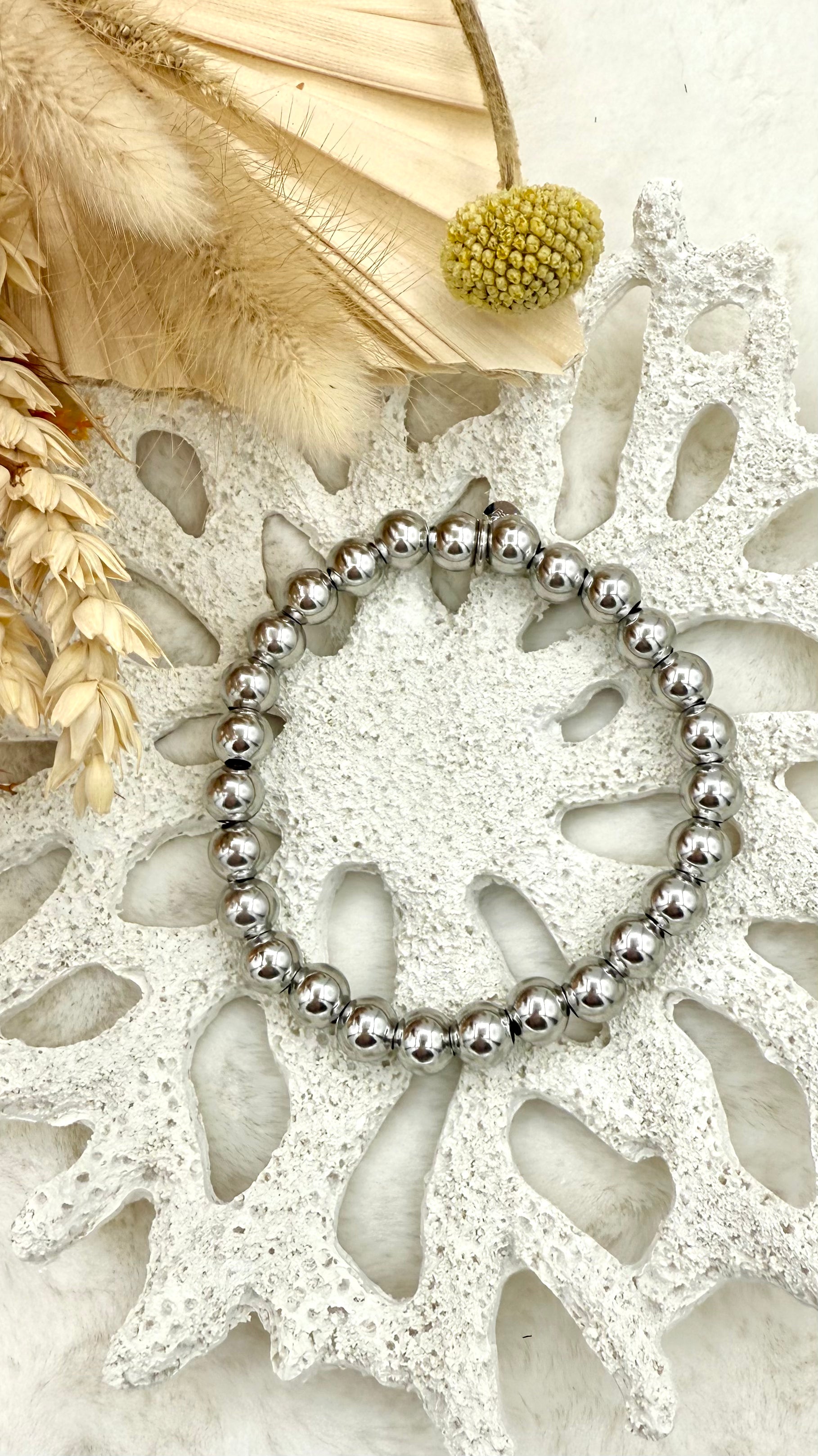 Schattig armbandje met stainless steel kralen. Dit armbandje is de op een na grootste maat van de 4. Combineer hem met de andere maten óf andere armbandjes uit onze collectie!