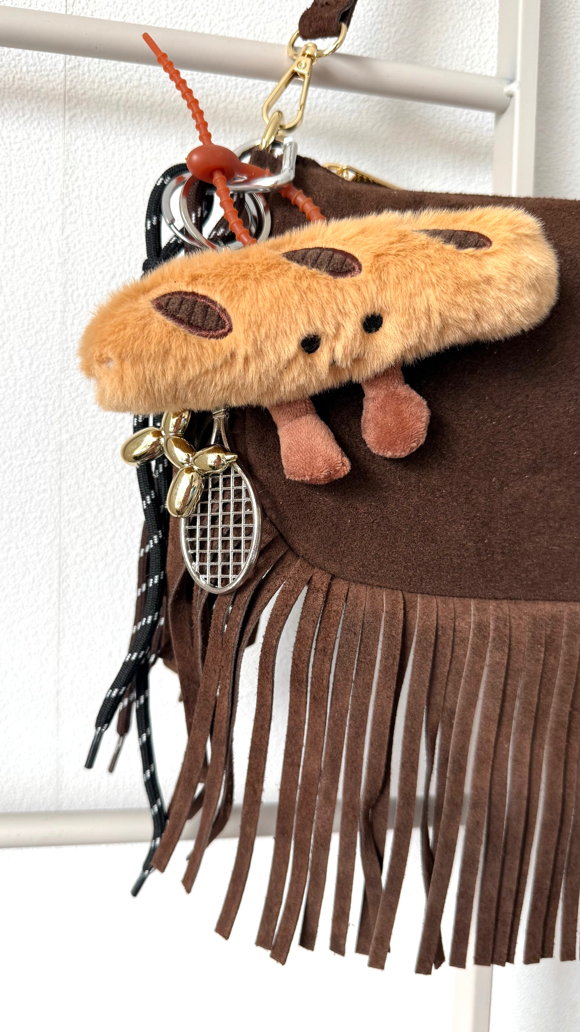 Geef je tas een vrolijke upgrade met deze speelse bagcharm! Met drie schattige hangertjes – een knuffelige baguette, een tennisracket en een ballonhondje – is dit de perfecte manier om je tas nét dat beetje extra persoonlijkheid te geven.