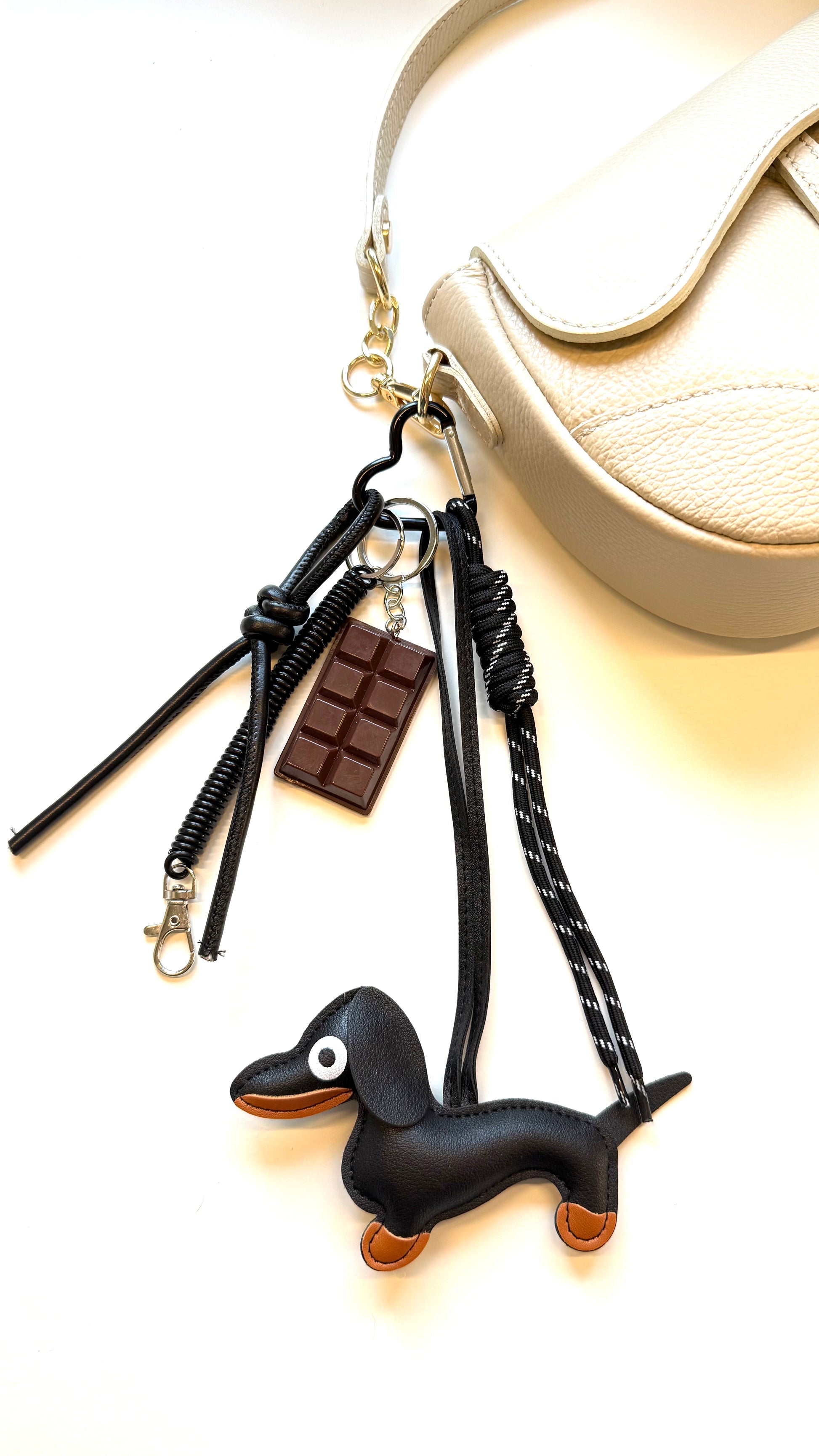 Dé trend van deze zomer; bagscharms! Je maakt hiermee die ene tas net een tikkeltje persoonlijker! Deze is toch té leuk? Er hangen verschillende items aan deze bagcharm waaronder een teckel en chocolade. We hebben dezer bagcharm in verschillende kleuren, welke is jouw favoriet?