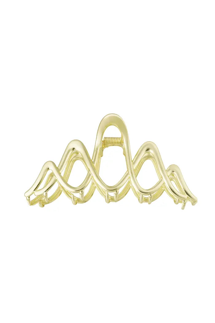 Shop deze prachtige gouden haarklem in de vorm van een sierlijke lus nu bij NOUKX! De haarklem kun je perfect op verschillende manieren dragen; zo kun je met deze klem de helft van jouw haar opsteken maar ook leuk om al jouw haren op te steken. Dit kan zowel op een casual als zakelijke manier. De haarklem kan uitstekend gecombineerd worden met bijpassende sieraden! De haarklem is gemaakt van metaal en heeft de afmetingen: 11,8 x 5,5 cm. Verkrijgbaar in de kleuren goud en zilver!
