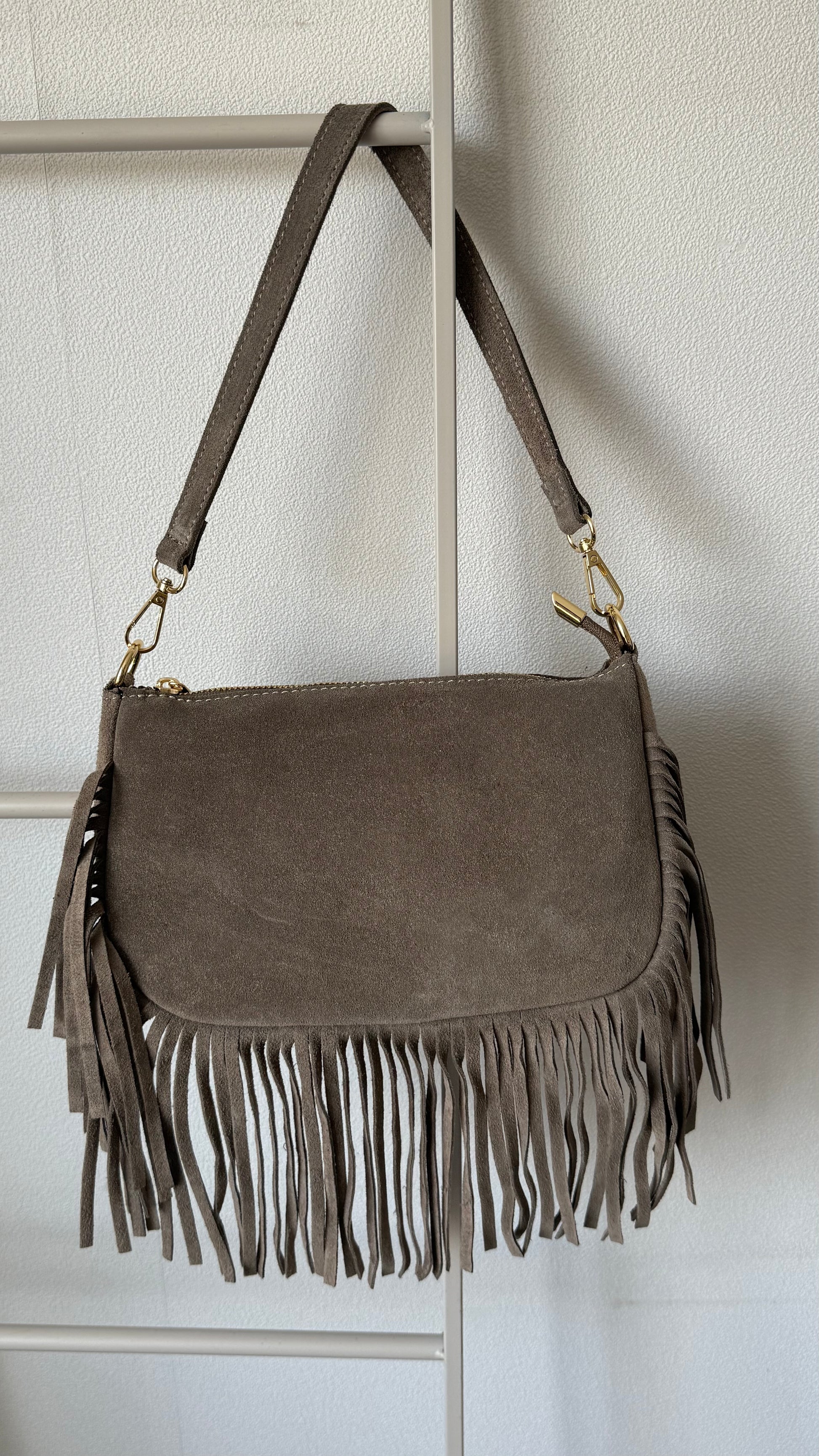 Deze tas is de perfecte mix van stoer en speels! Het hoekige design geeft ‘m een moderne, strakke look, terwijl de zachte suède franjes zorgen voor die heerlijke boho-vibe. Dankzij het verstelbare hengsel draag je ‘m zowel crossbody als over je schouder – ideaal voor elke gelegenheid.