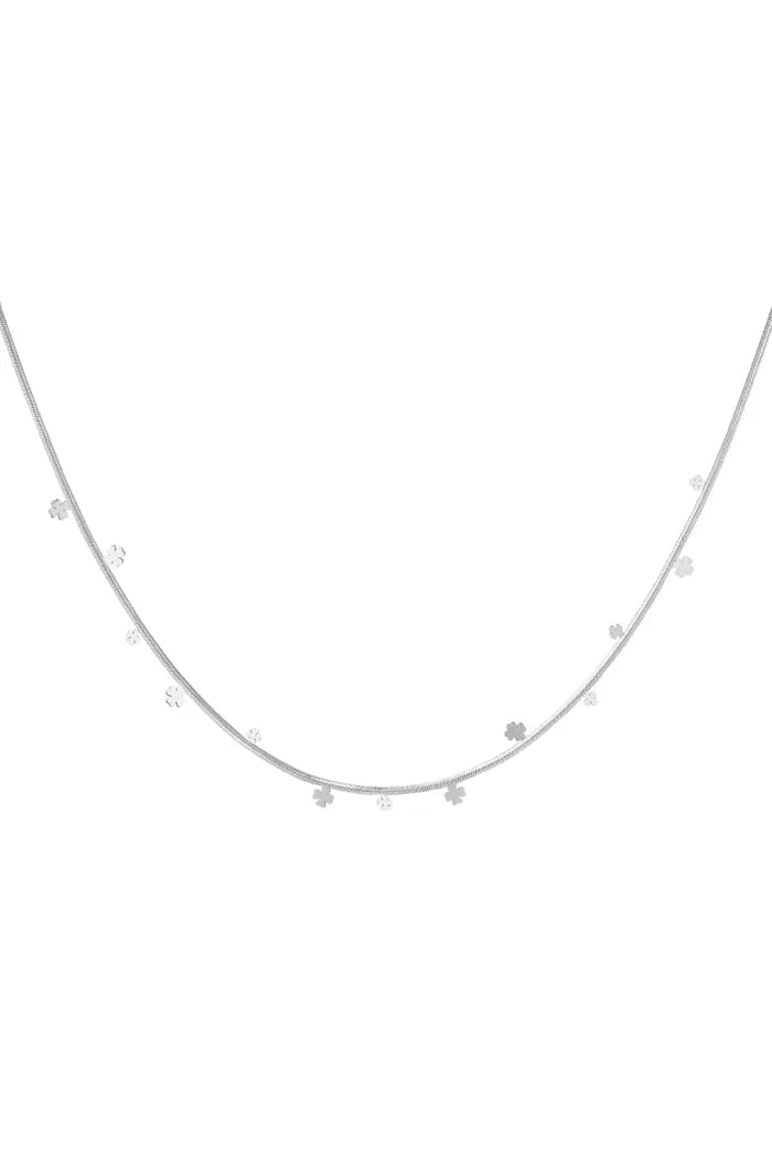 Hoe tof is deze zilveren ketting met superveel leuke kleine klavertjes! Erg trendy en de perfecte musthave voor het creëren van een leuke ketting party! De ketting is daarnaast een superleuk cadeau om te geven. De ketting is gemaakt van stainless steel en kun je dankzij de verstelbare sluiting dragen vanaf 39 cm, tot en met 44 cm. Verkrijgbaar in de kleuren zilver en goud.