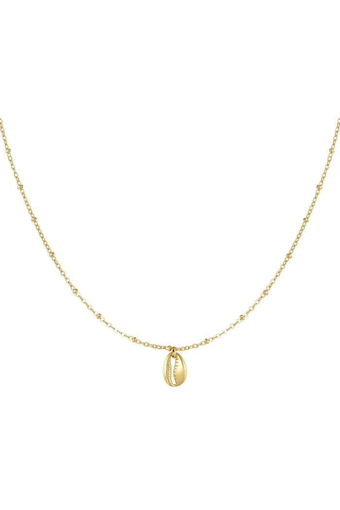 Deze gouden ketting met bedel in de vorm van een schelp is echt iets voor jou! De ketting is een echte musthave doordat de ketting op veel verschillende manieren gedegen kan worden, ideaal! De ketting is gemaakt van Stainless steel en heeft de volgende afmeting: 39 tot en met 44 cm. Verkrijgbaar in de kleur goud.