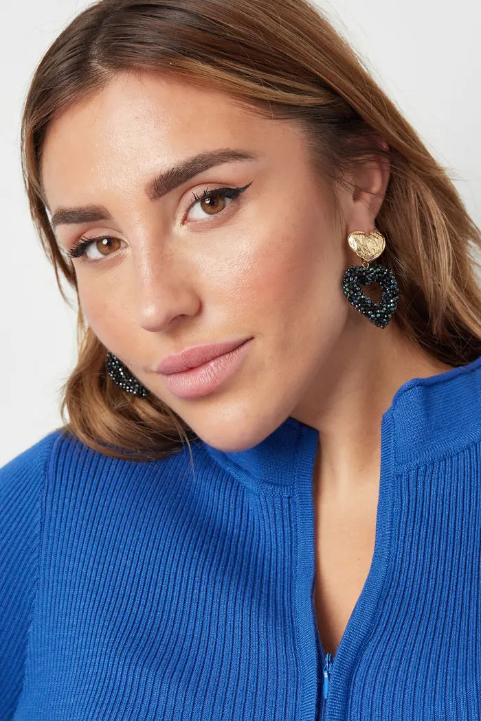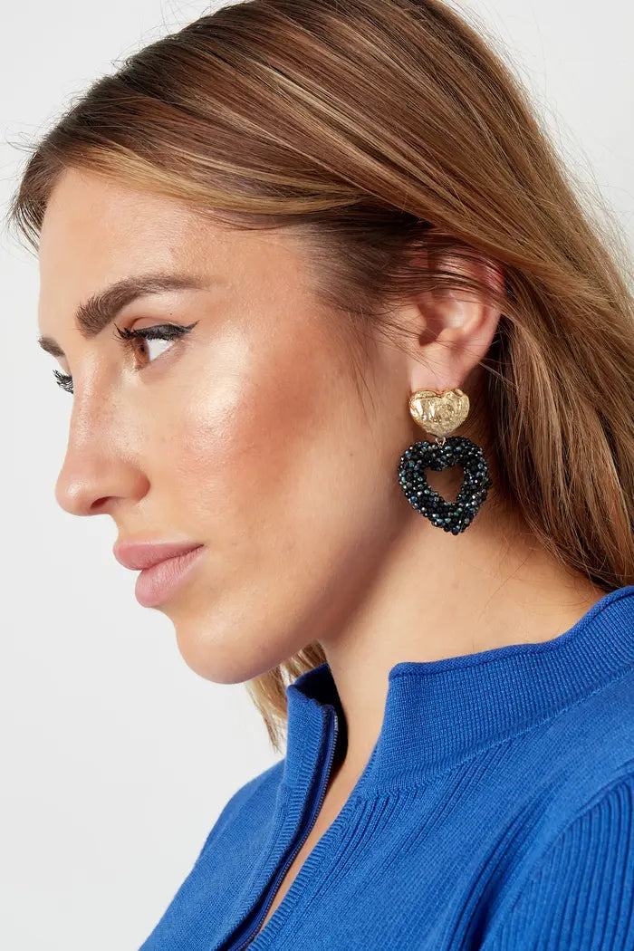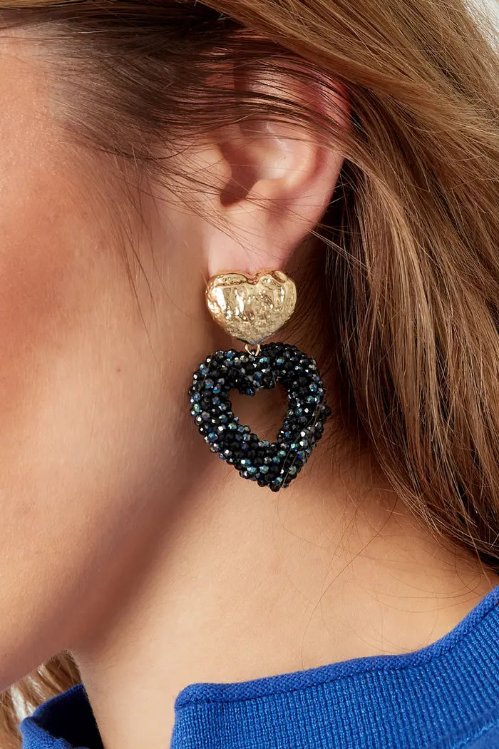 Wauw! Hoe tof zijn deze gouden oorbellen met een hart, gemaakt van kraaltjes! De oorbellen zijn perfect te dragen met meerdere kleurrijke oorbellen. Ook leuk om deze oorbellen te combineren met meerdere sieraden van kraaltjes. De oorbellen zijn gemaakt van Alloy en kristal kraaltjes en hebben een afmeting van 4,5 cm. Verkrijgbaar in de kleuren grijs, groen en zwart.