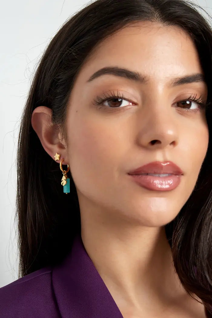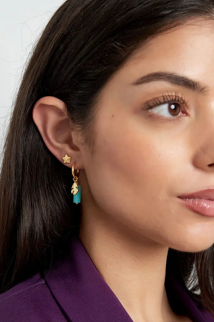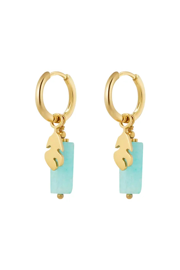 Hele leuke oorbellen met een blauw hematiet steentje en een veertjesbedeltje. De oorbellen zijn gemaakt van stainless steel en hematiet en hebben een lengte van 3,4 x 1,4 cm.