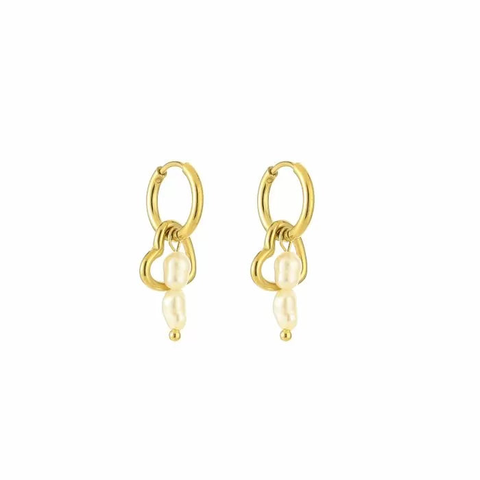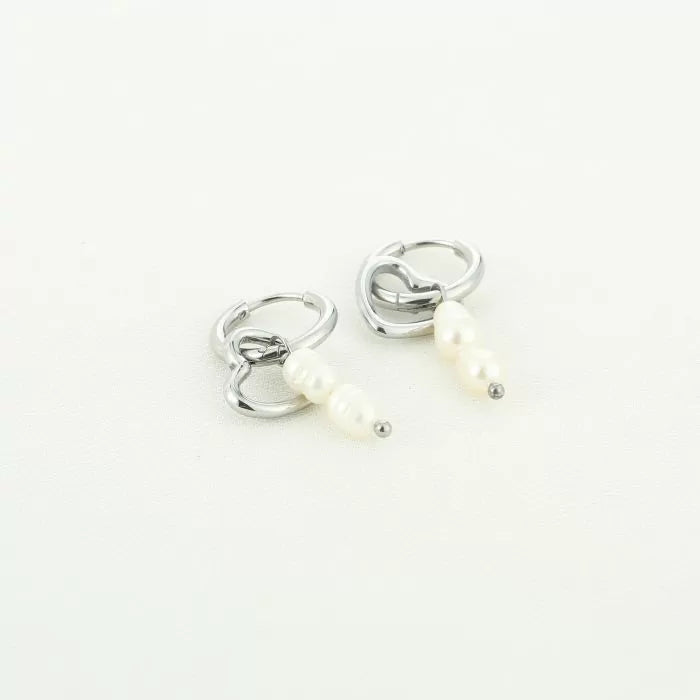 De oorbellen hebben een hartje en een staafje met pareltjes. Je kunt eventueel het hartje óf juist de pareltjes ook los dragen. De oorbellen zijn gemaakt van stainless steel en verkrijgbaar in zowel goud als zilver.