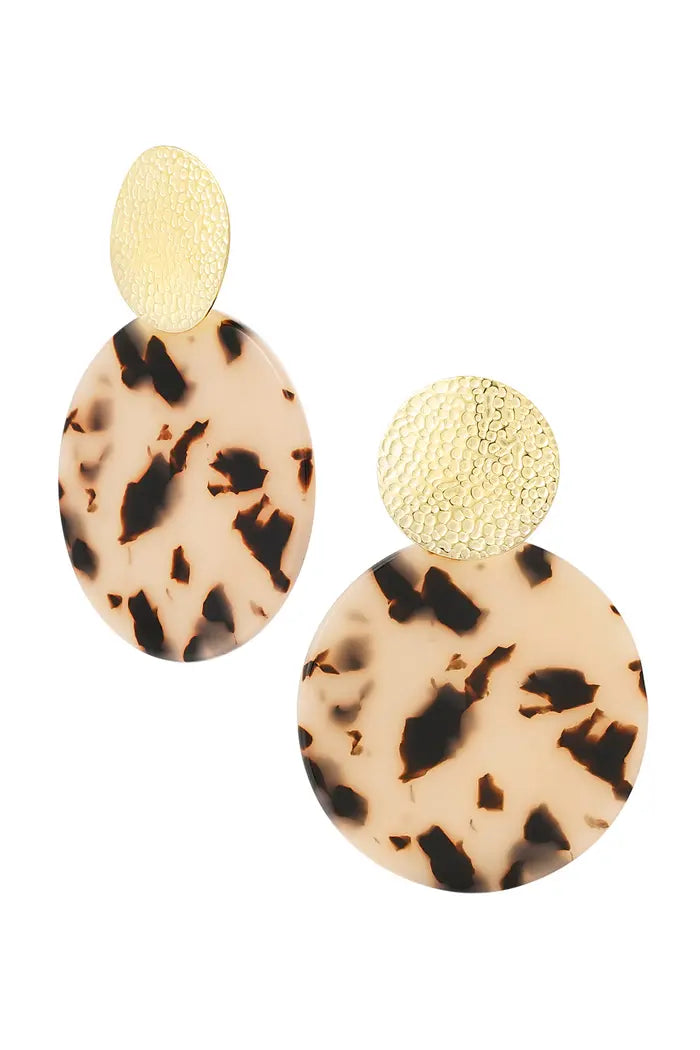 Shop nu deze te gekke gouden statement oorbellen met goud en print detail in de kleur camel. De oorbellen zijn op een speelse manier leuk te combineren met meerdere sieraden met print details! Daarnaast kun je deze oorbellen leuk combineren met meerdere oorbellen voor een toffe ear party. De oorbellen zijn gemaakt van stainless steel en sheet materiaal en hebben een afmeting van 7 cm.