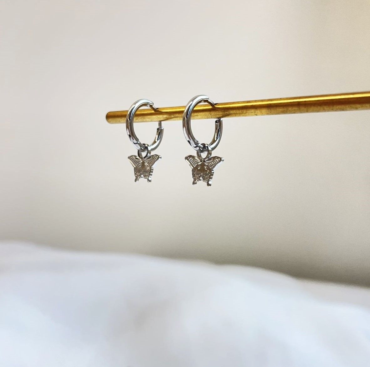 Hoe cute zijn deze schattige vlinder oorbellen? De oorbellen zijn heel leuk om single te dragen in je eerste gaatje, maar nóg leuker om te combineren met meerdere gaatjes! De oorbellen zijn gemaakt van stainless steel en hebben een afmeting van 1,7 x 0,8 cm. De oorbellen zijn verkrijgbaar in goud en zilver.