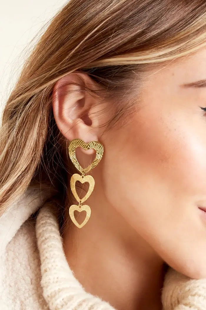 Hoe mooi zijn deze oorbellen met bedels in de vorm van drie sterren! De sterren zijn voorzien van structuur waardoor de oorbellen er luxe uitzien! De totale afmeting van de oorbellen is 6,3 cm, perfect om deze oorbellen als statement sieraad te dragen! Deze oorbellen kunnen gecombineerd worden met kleinere oorbellen.
