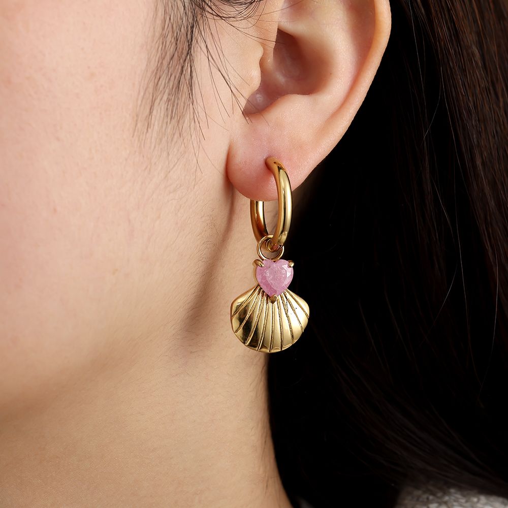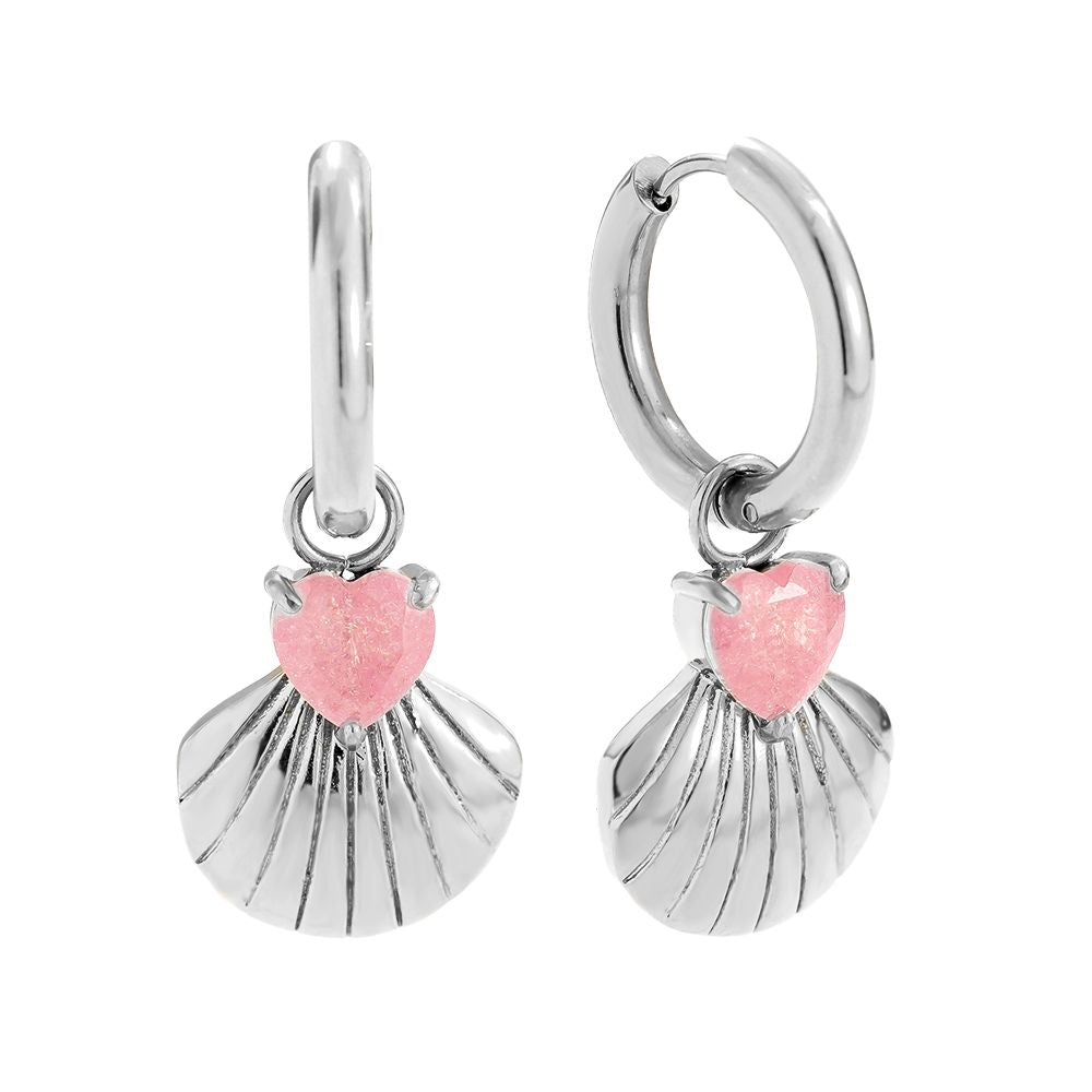 Oorbellen Shell with pink heart