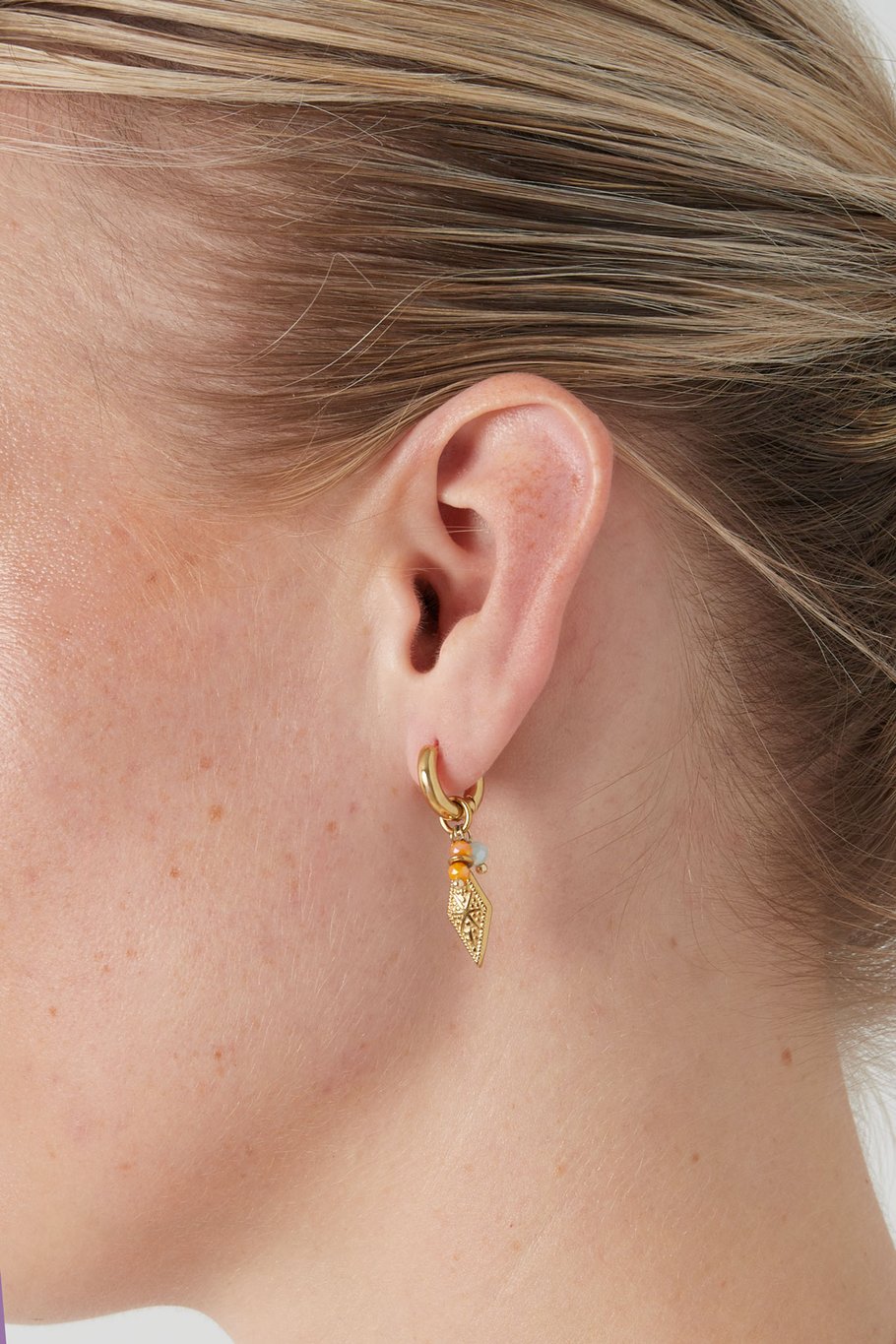 Toffe oorbellen met een ruitvormige bedel en kraaltjes in de kleuren groen en rood. De oorbellen zijn gemaakt van stainless steel in combinatie met stenen en hematiet. Deze oorbellen zijn superleuk te combineren met meerdere gouden oorbellen voor een neutrale look.