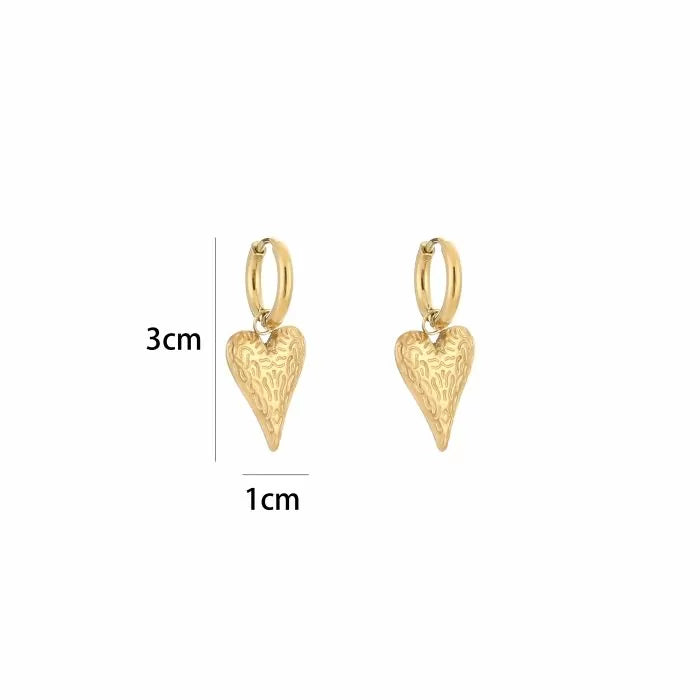 Hele schattige hartjesoorbellen met een textuur in het hartje. De oorbellen zijn van stainless steel en hebben een afmeting van 3 x 1 cm.