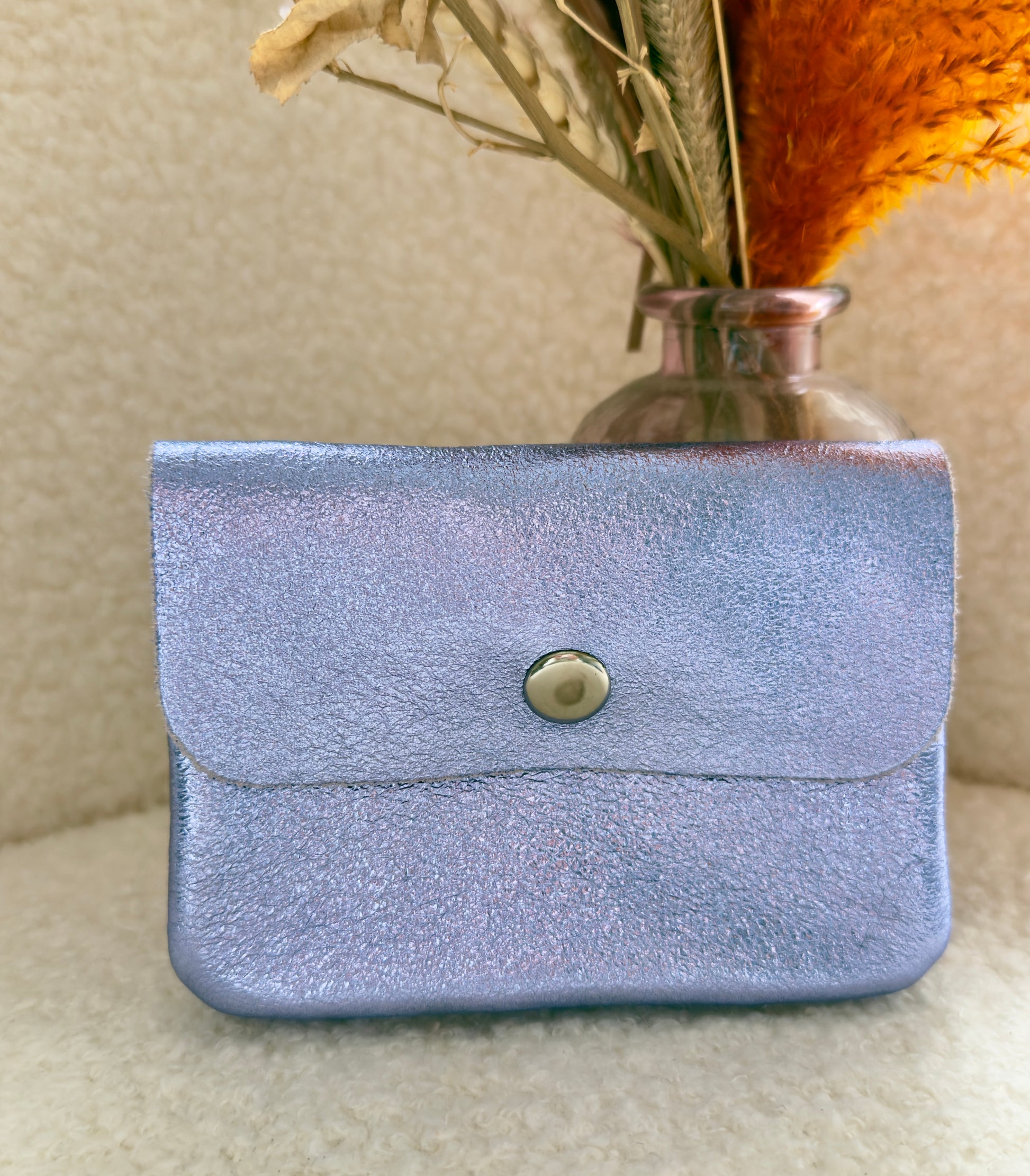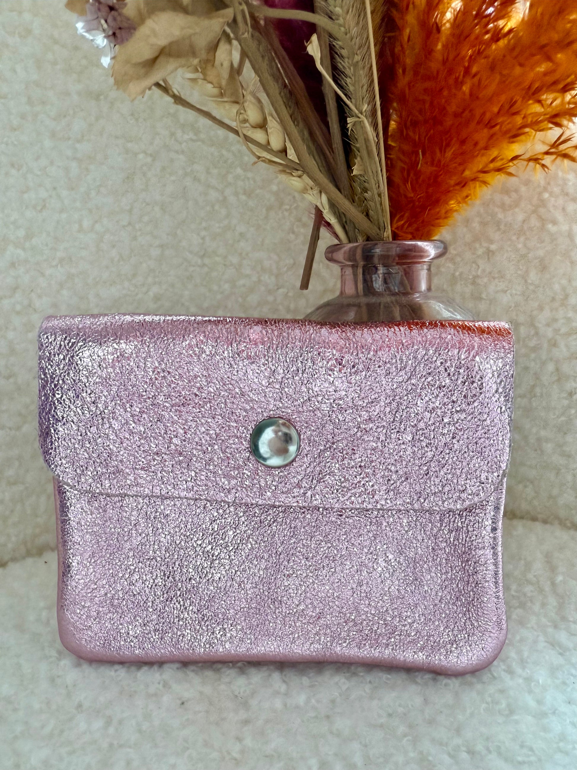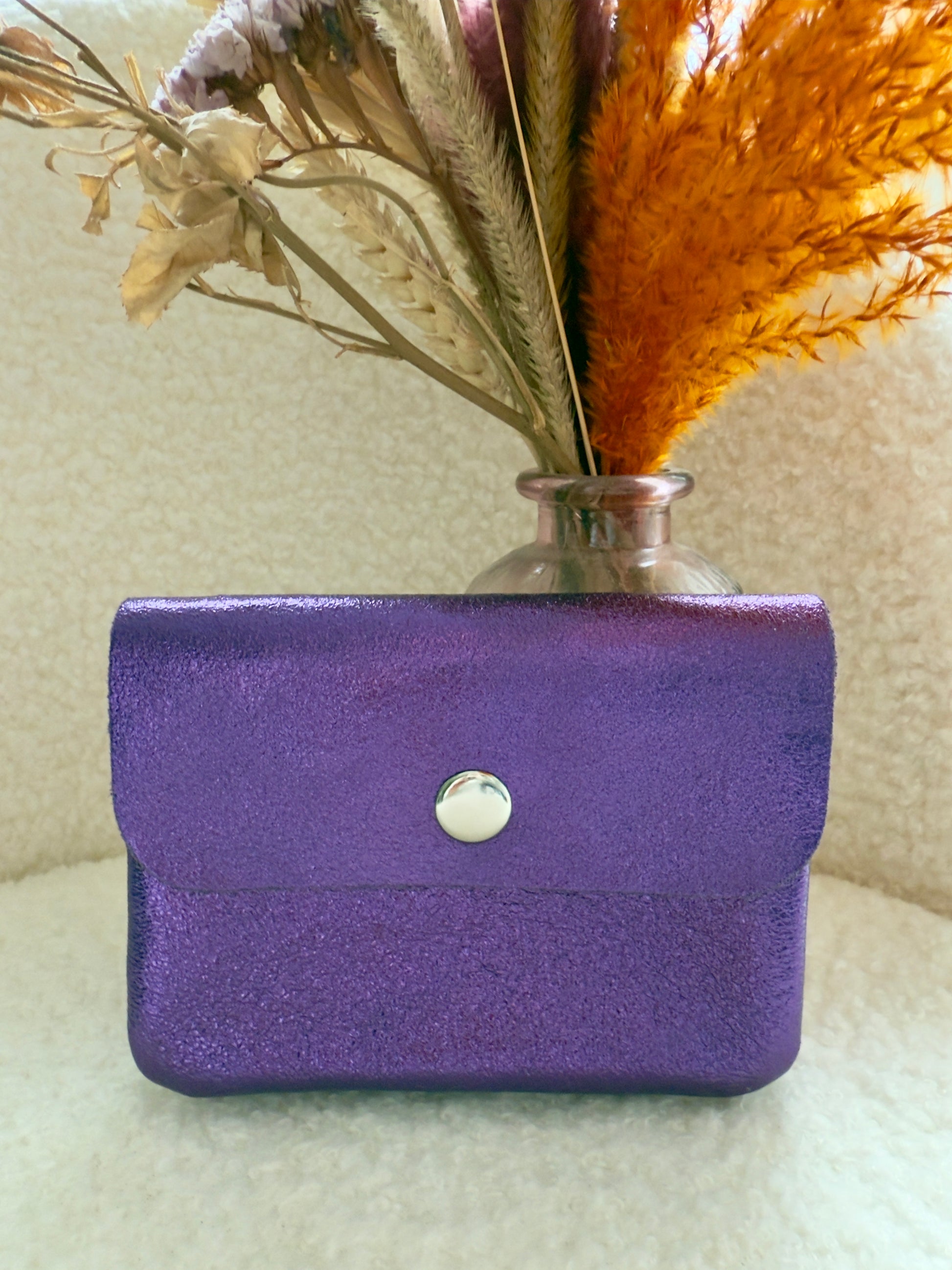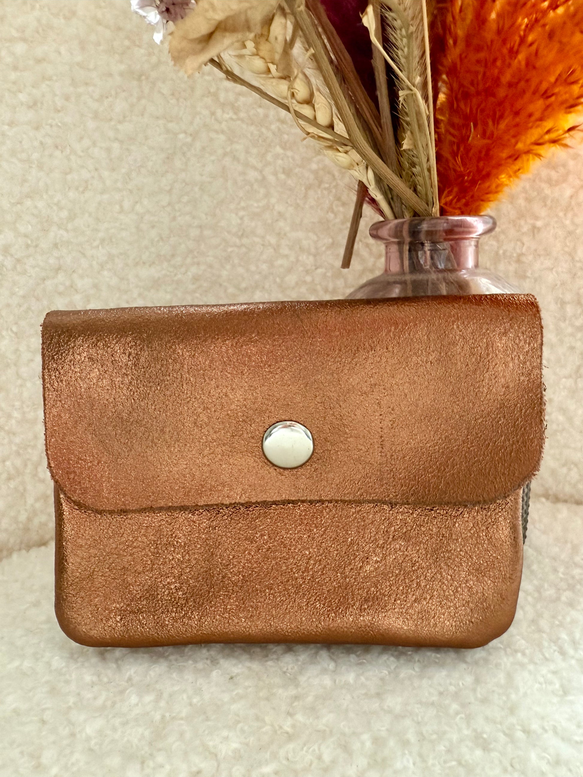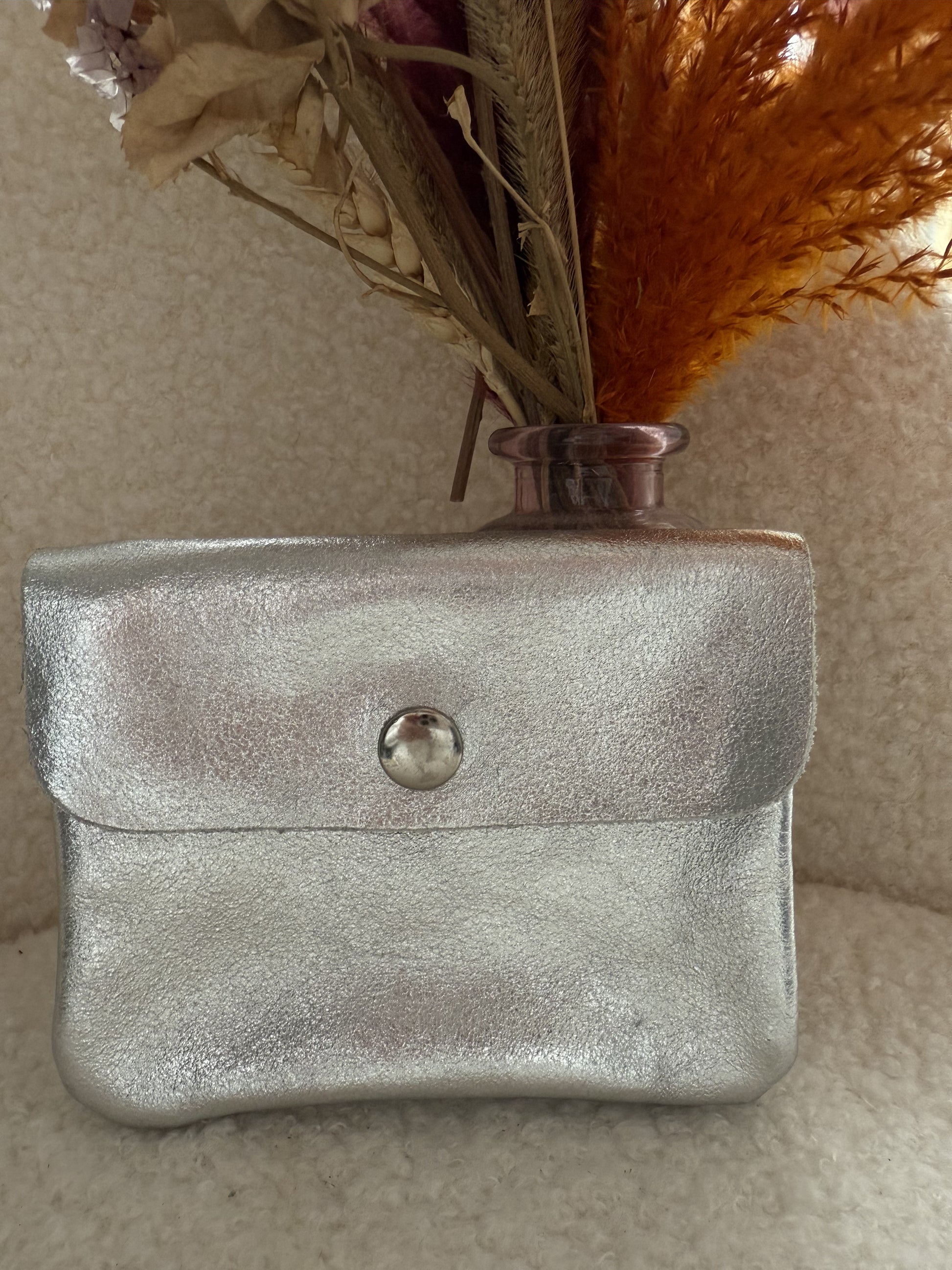 Handgemaakt portemonneetje van Italiaans leer. Het portemonneetje heeft een drukknoopje en twee vakjes aan de binnenkant. 1 vak voor pasjes/ briefgeld. 1 vak met rits voor muntgeld. Er passen heel wat pasjes in het portemonneetje gezien het leer soepel is.