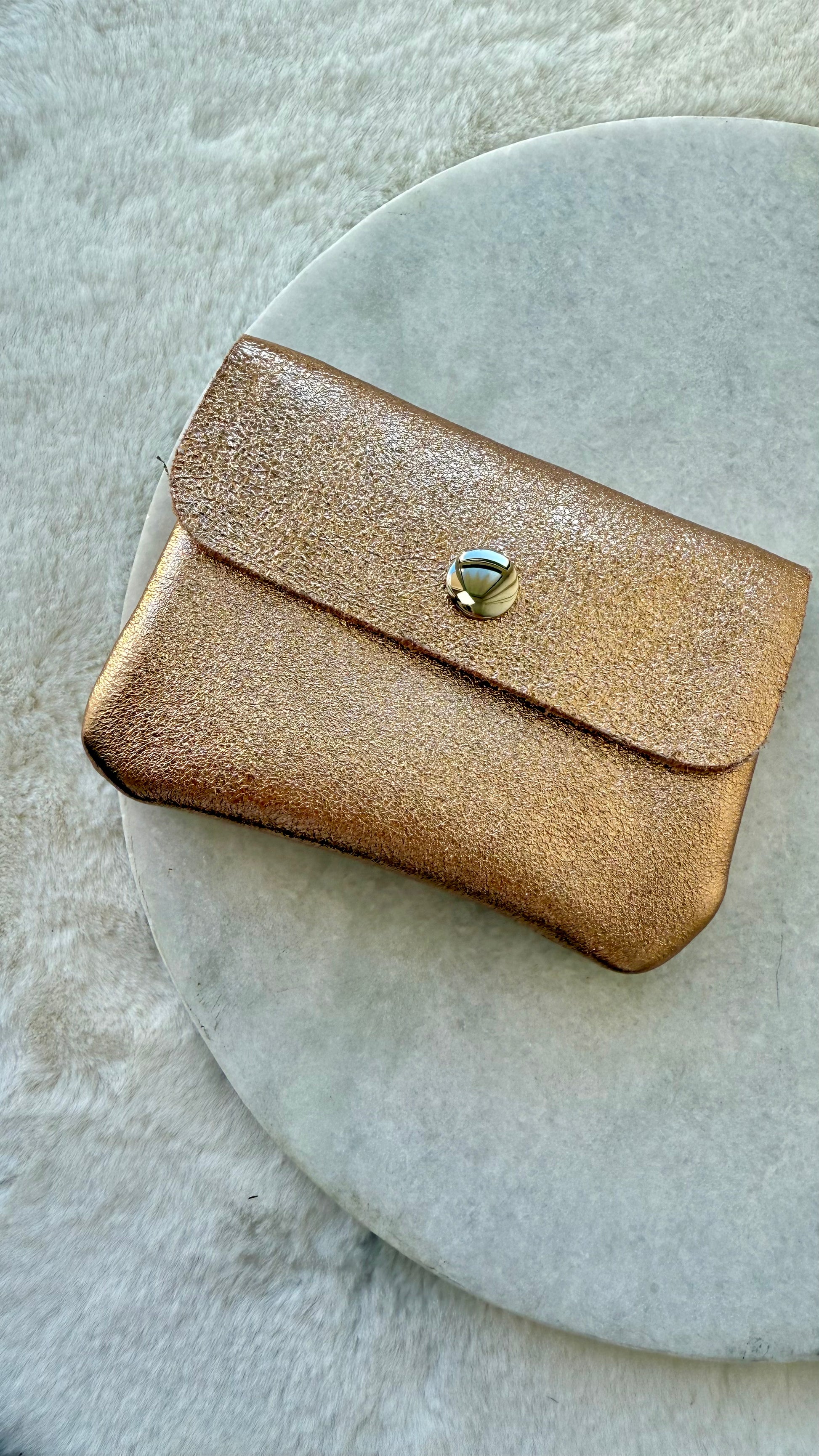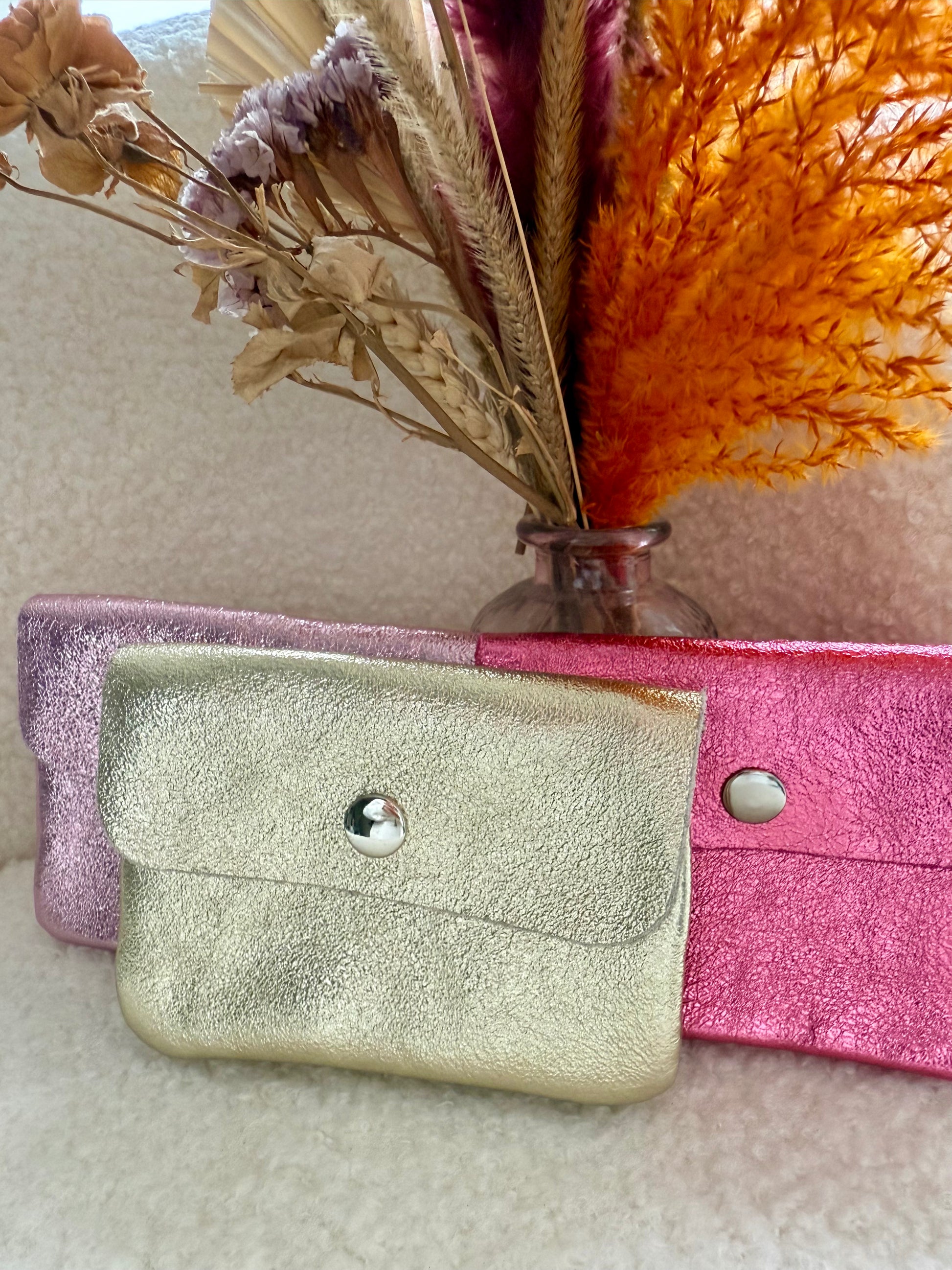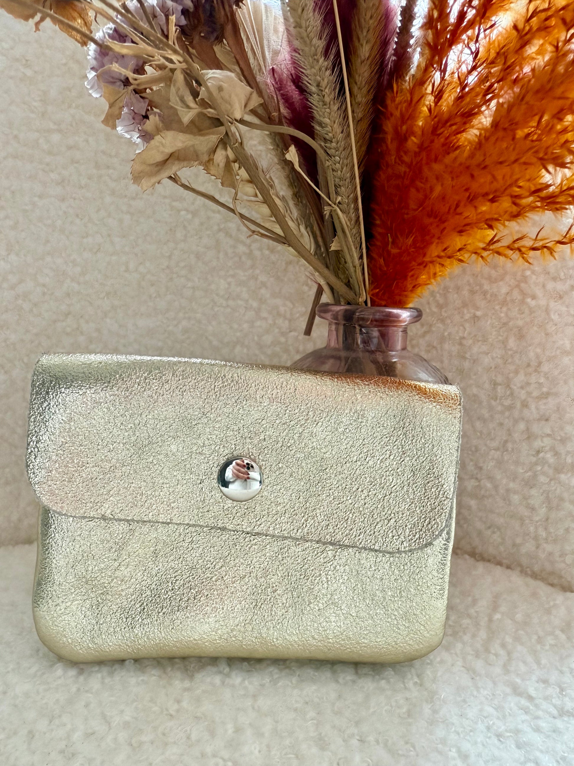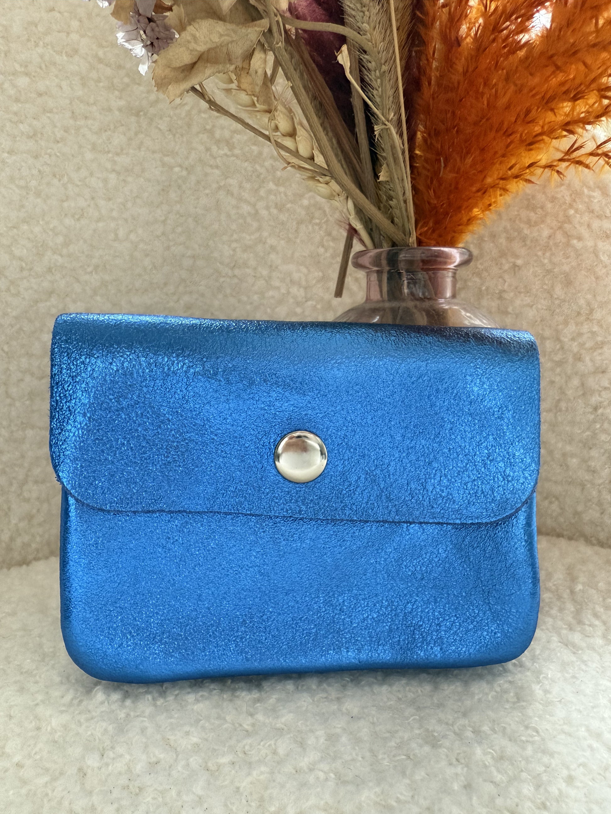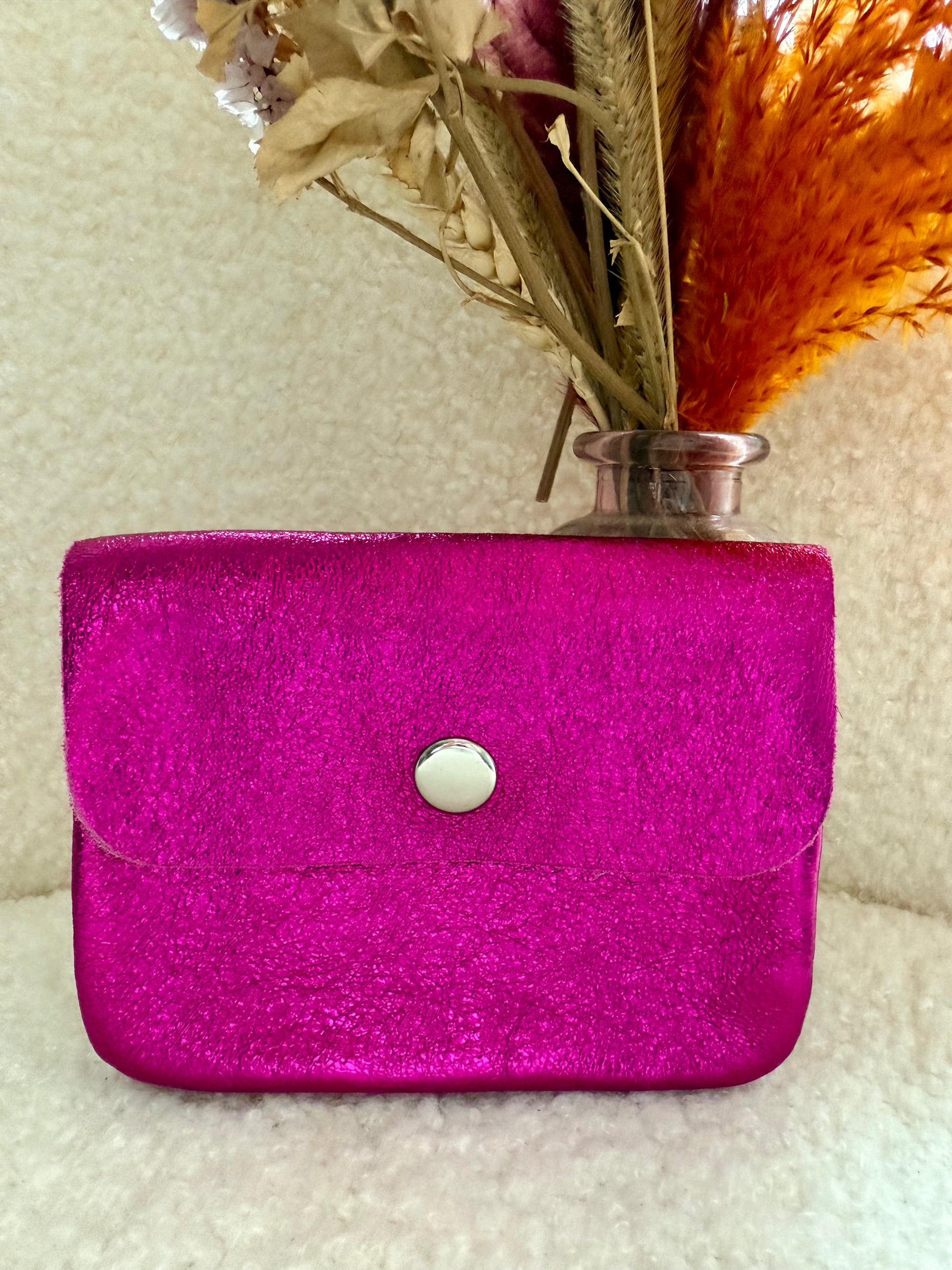 Handgemaakt portemonneetje van Italiaans leer. Het portemonneetje heeft een drukknoopje en twee vakjes aan de binnenkant. 1 vak voor pasjes/ briefgeld. 1 vak met rits voor muntgeld. Er passen heel wat pasjes in het portemonneetje gezien het leer soepel is.