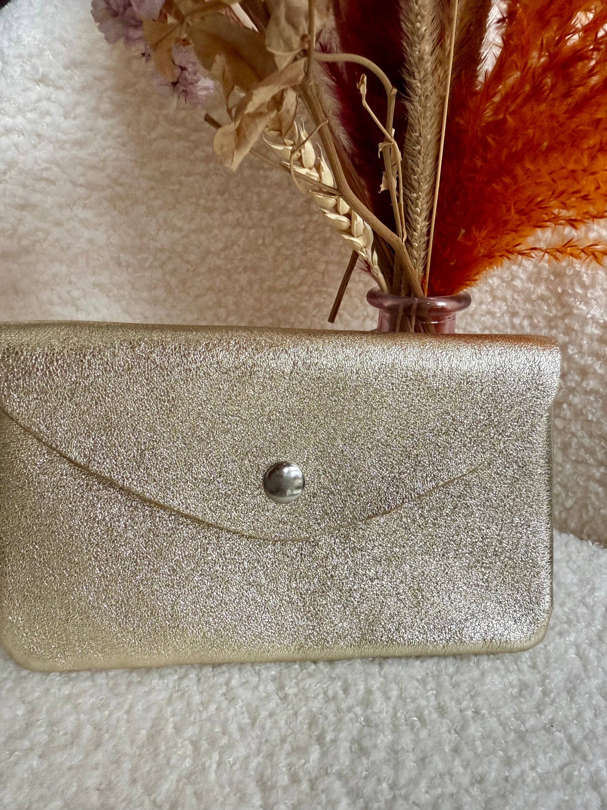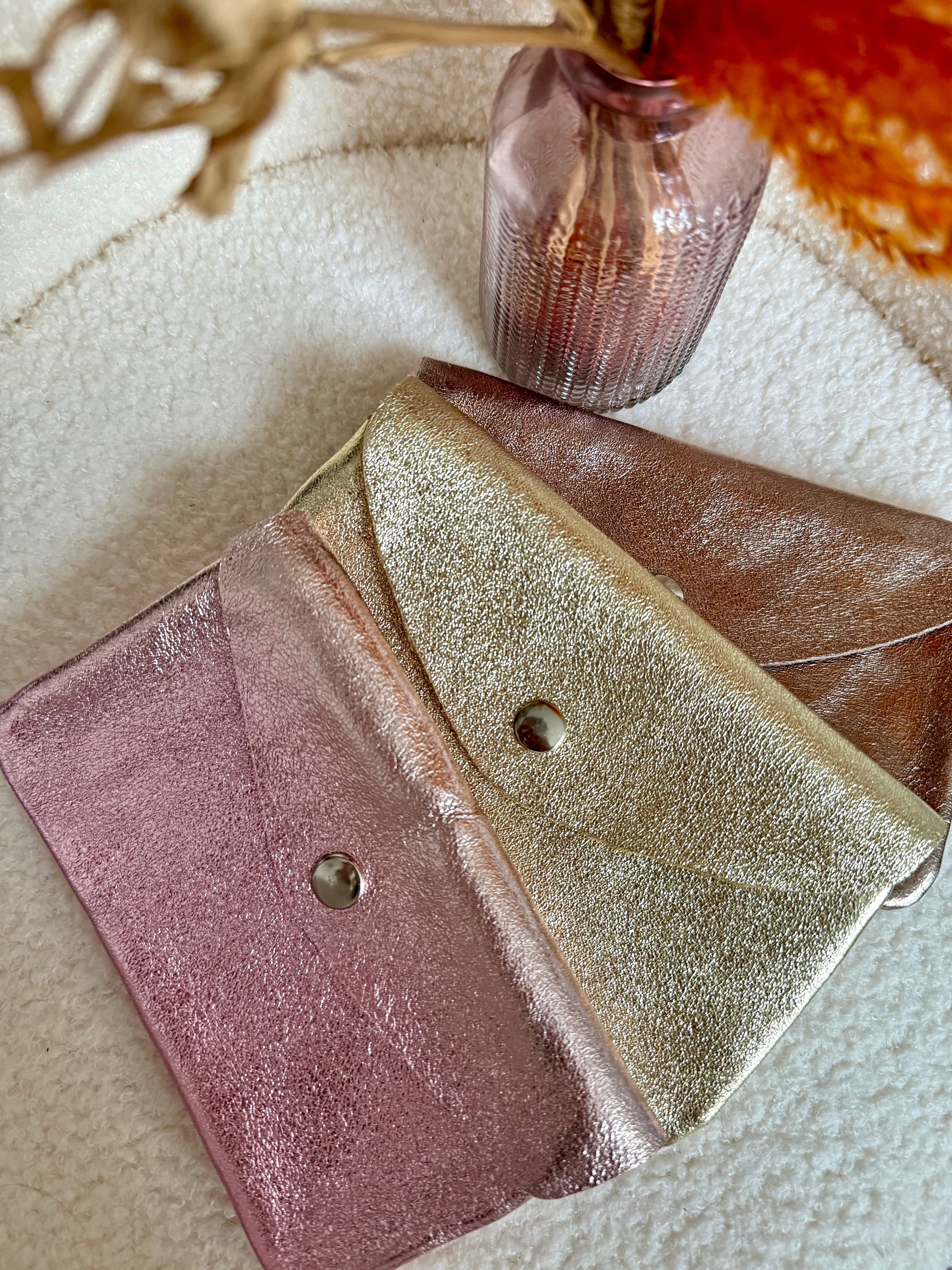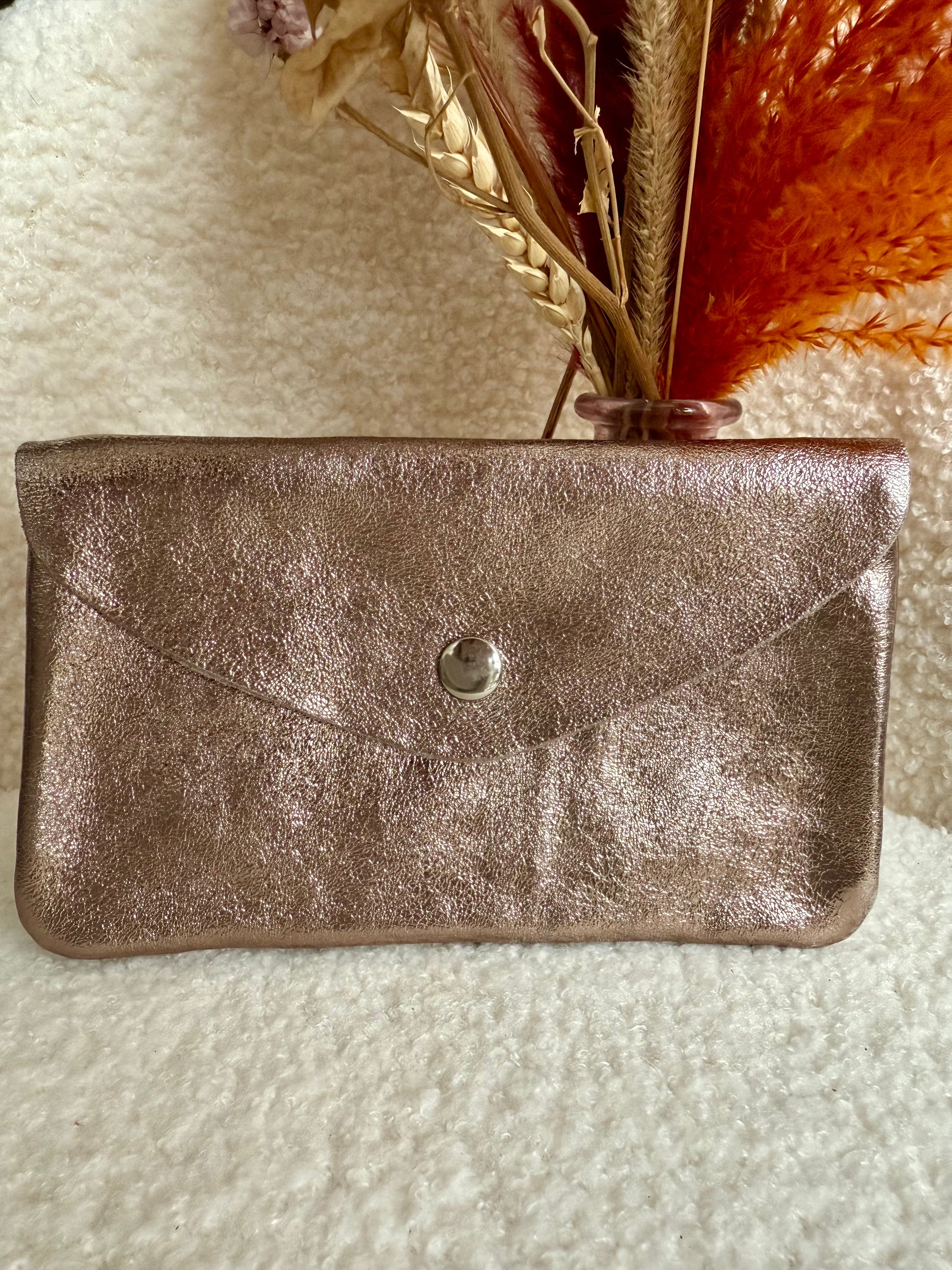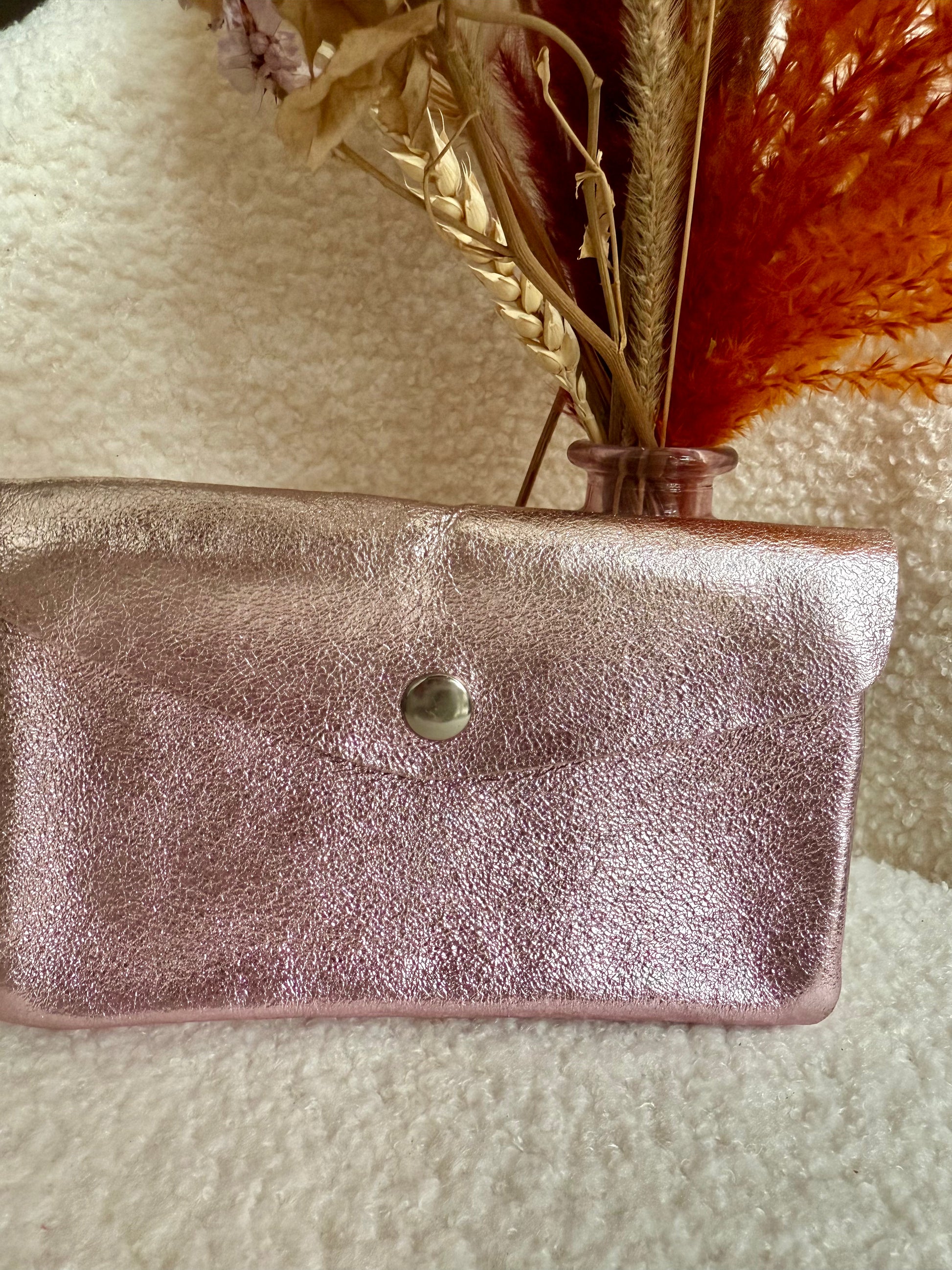 Handgemaakt portemonneetje van Italiaans leer. Het portemonneetje heeft een drukknoopje en twee vakjes aan de binnenkant. 1 vak voor pasjes/ briefgeld. 1 vak met rits voor muntgeld. Het briefgeld past in dit portemonneetje er rechtop in.