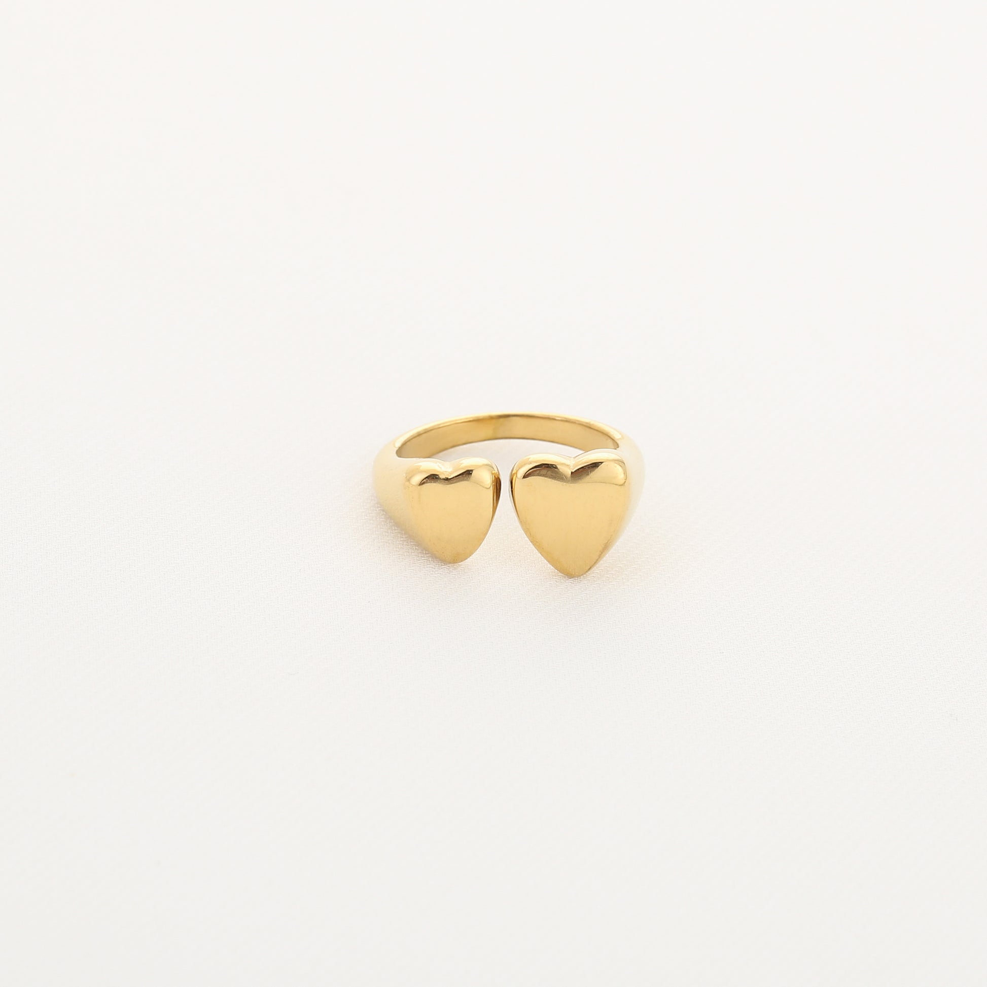 Ring met twee grote harten. Deze wil je toch in jouw sieradenstash? De ring is gemaakt van stainless steel en verkrijgbaar in het goud.