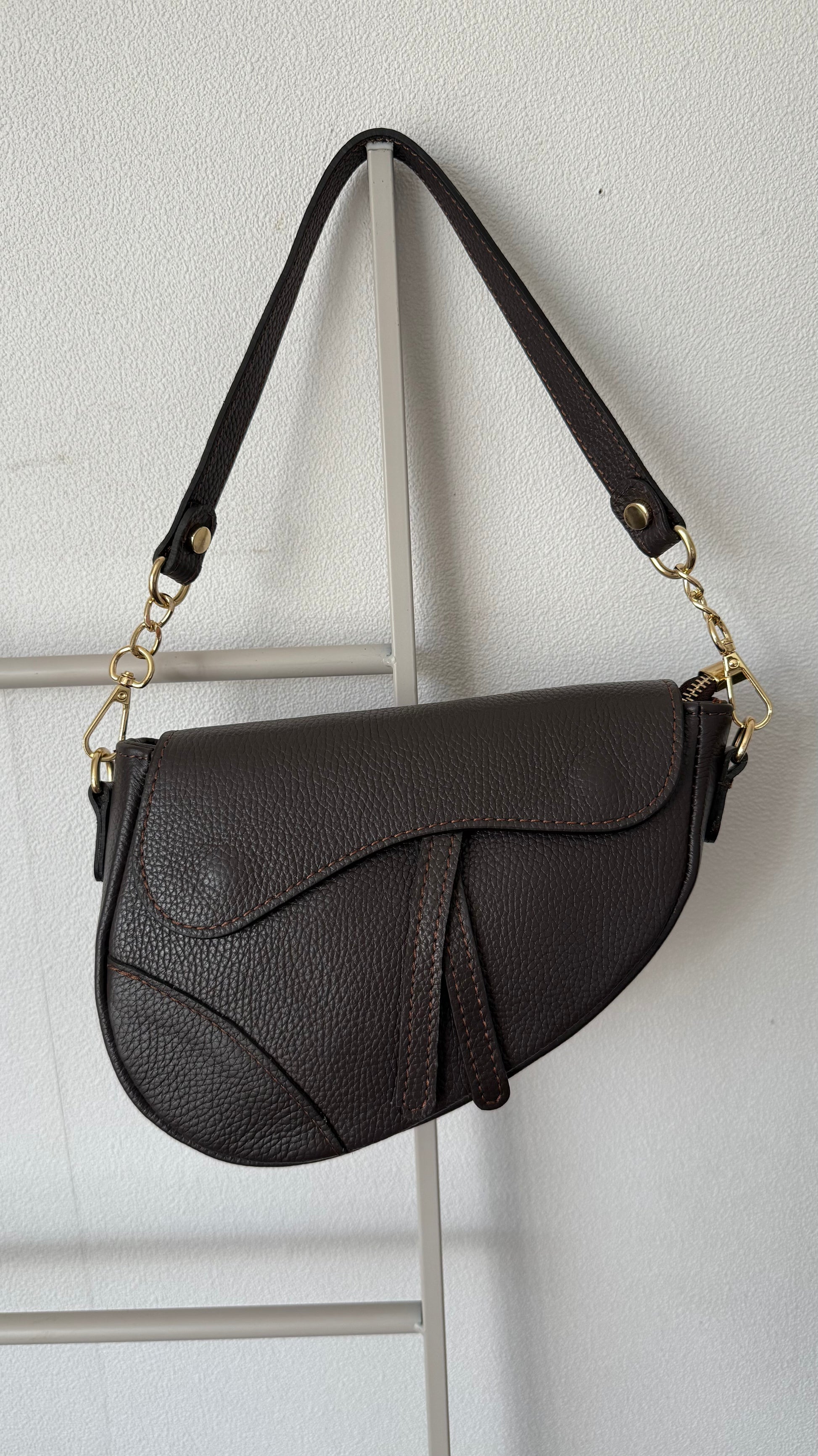 Deze tas is een echte musthave voor wie van een stoere, klassieke look houdt! Het zadelvormige design geeft ‘m een unieke en tijdloze uitstraling, terwijl het stevige leer zorgt dat ‘ie jarenlang mooi blijft. Daarbij is donkerbruin dé trendkleur van komend najaar!